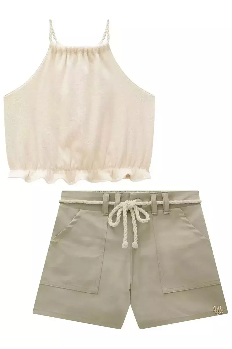 CONJUNTO BLUSA CROPPED LITTLE WAFLE E SHORT SARJA LILIMOON 84477
