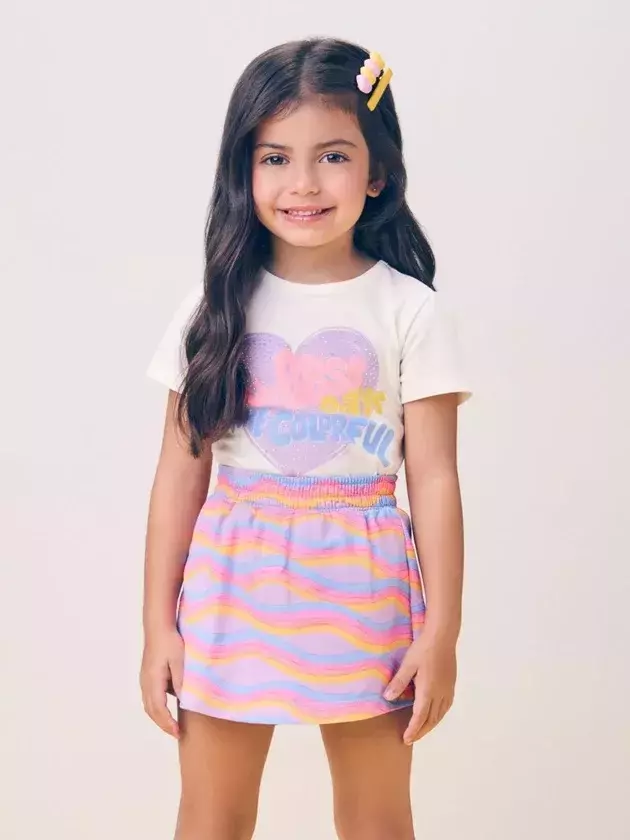 CONJUNTO BLUSA E SHORT ARCO-IRIS STRASS MOMI J6841