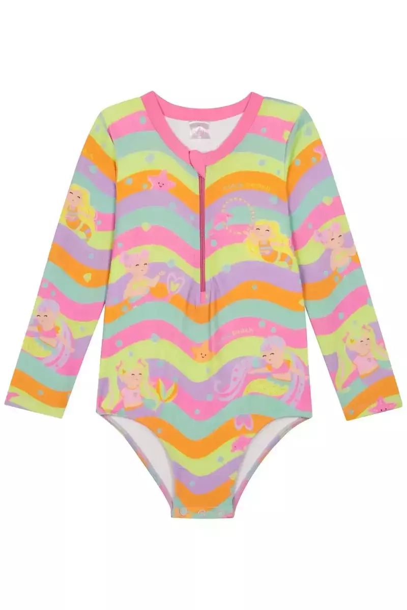 O maiô em malha com proteção UV50+ prepara as pequenas para se divertirem na praia ou na piscina com muito estilo e conforto! Disponível em duas cores super estilosas - verde e rosa - é uma peça que combina encanto, conforto e, o mais importante, proteção! Perfeita para a pele delicada das meninas nos dias ensolarados. A sublimação divertida adiciona um charme especial à peça.
