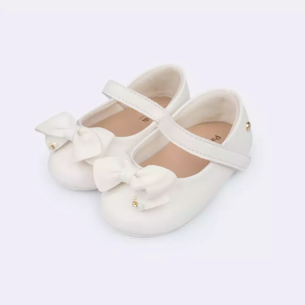 Fofo e delicado, o sapatinho branco é feito para tornar cada passinho mais especial. Produzido em material sintético flexível, proporciona conforto, segurança e mobilidade. O destaque vai para o laço fixo no cabedal, que completa o modelo com charme e romantismo.
