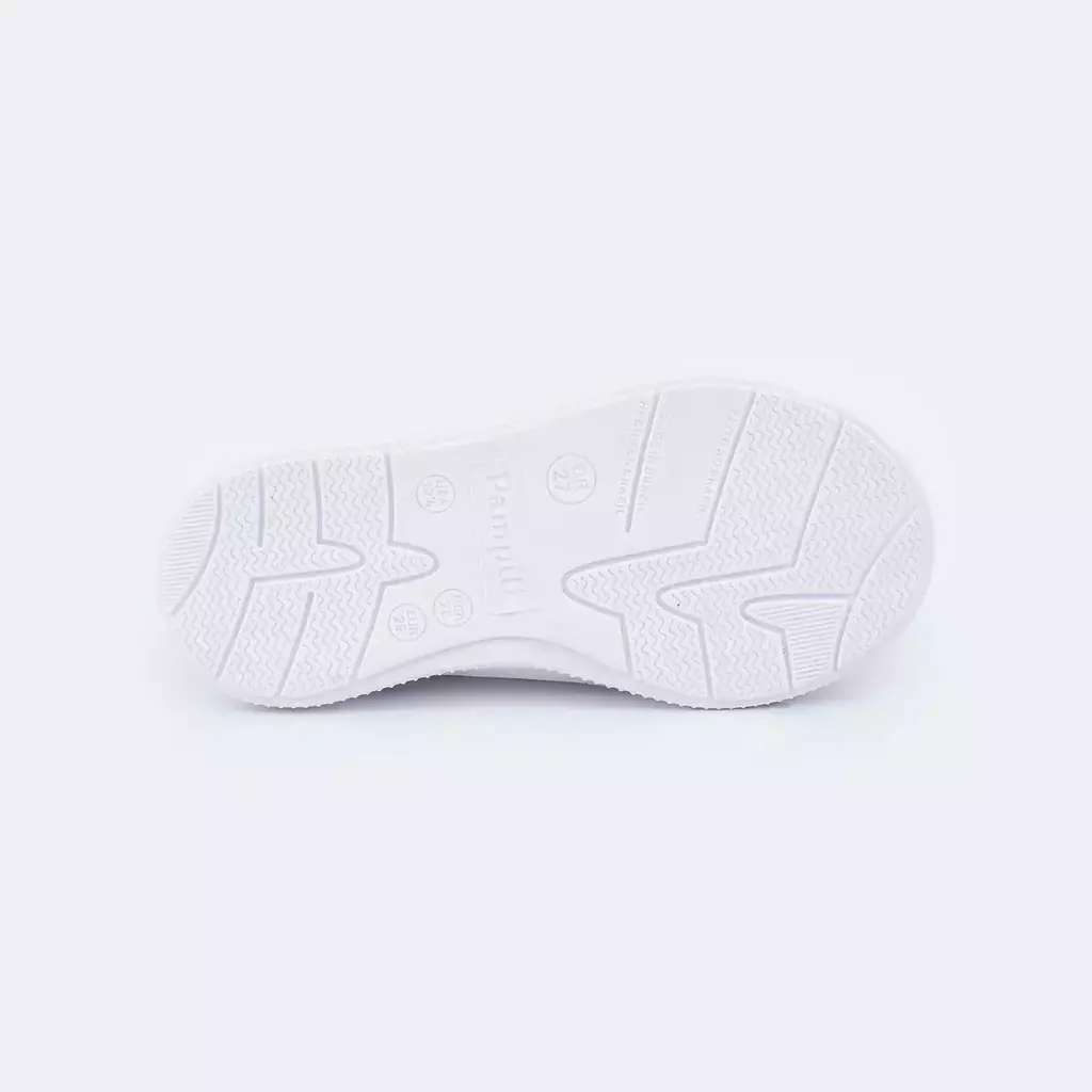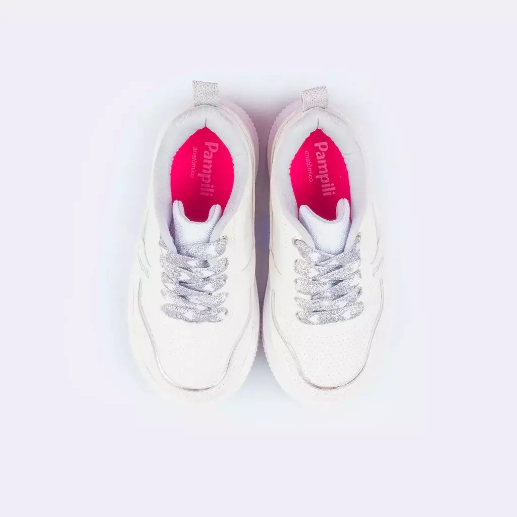 O design com solado caixa atemporal, oferece estilo moderno e uma base antiderrapante que garante mais estabilidade nos passos. O cadarço dupla face - branco/prata com mini corações, proporciona ajuste seguro e personalizado ao tênis. O forro com espuma absorvente ajuda a manter os pés secos e confortáveis ao longo do dia.