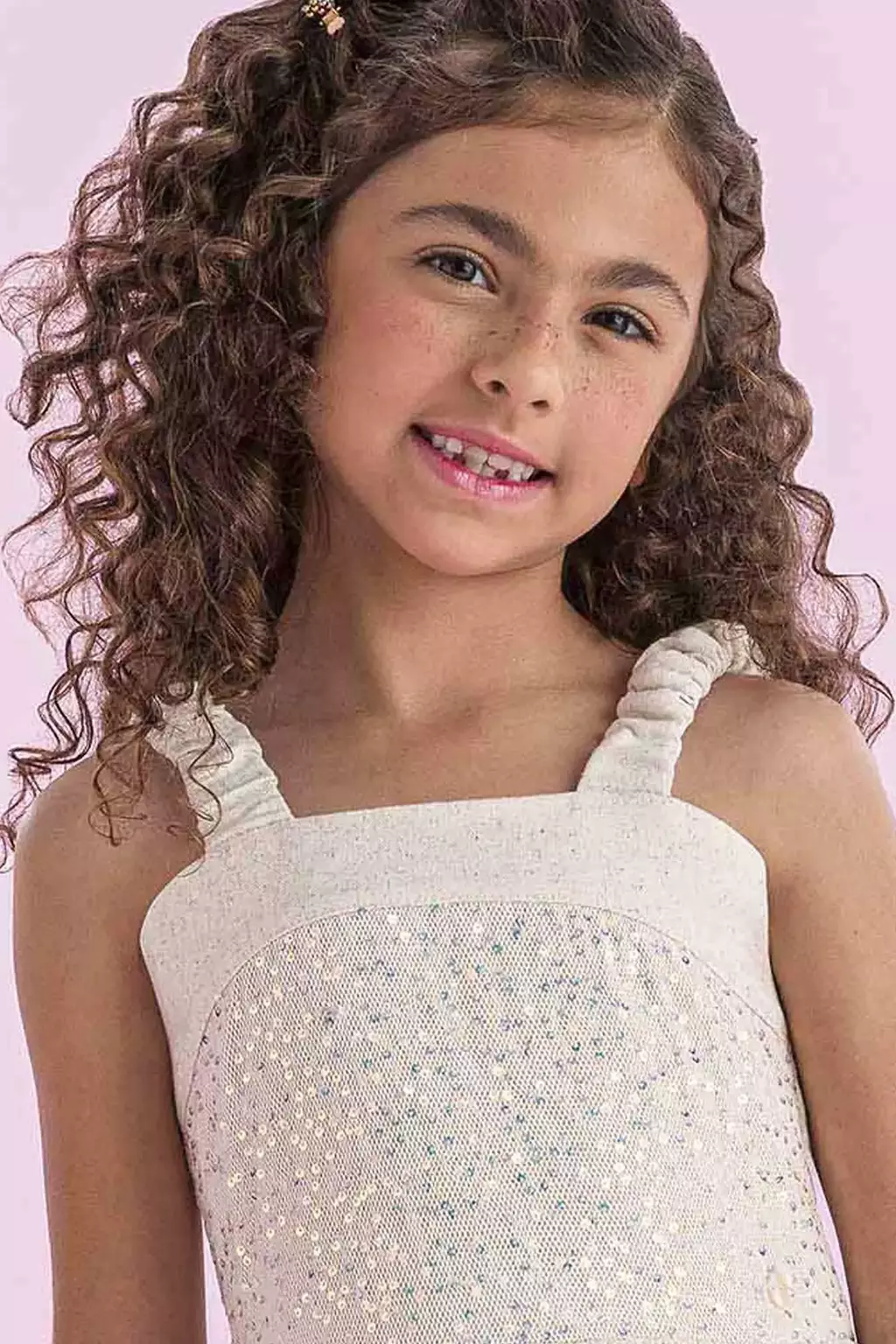 vestido Petit Cherie é perfeito para compor produções delicadas com um toque fashion. O modelo traz parte superior com aplicação de paetês brilhantes que adicionam charme e destaque à peça. As alças com babadinhos e a saia com recorte franzido garantem leveza e movimento, tornando-o ideal para ocasiões especiais e momentos cheios de estilo.