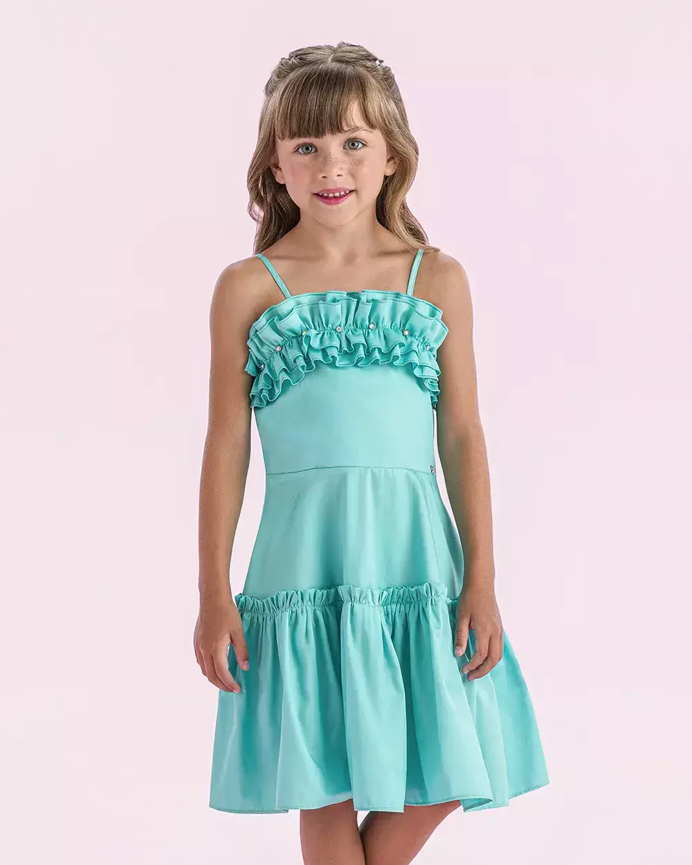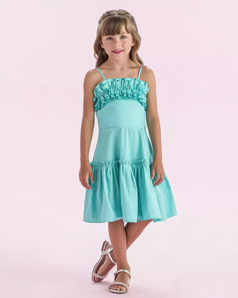 O Vestido Turquesa Petit Cherie é sinônimo de sofisticação e delicadeza. Cada detalhe foi pensado para envolver sua pequena em um toque de luxo: alcinhas finas, babados suaves no busto e aplicações de pedrarias reluzentes que iluminam o look com elegância. A modelagem fluida e o caimento impecável garantem movimento leve e um visual digno das ocasiões mais especiais.